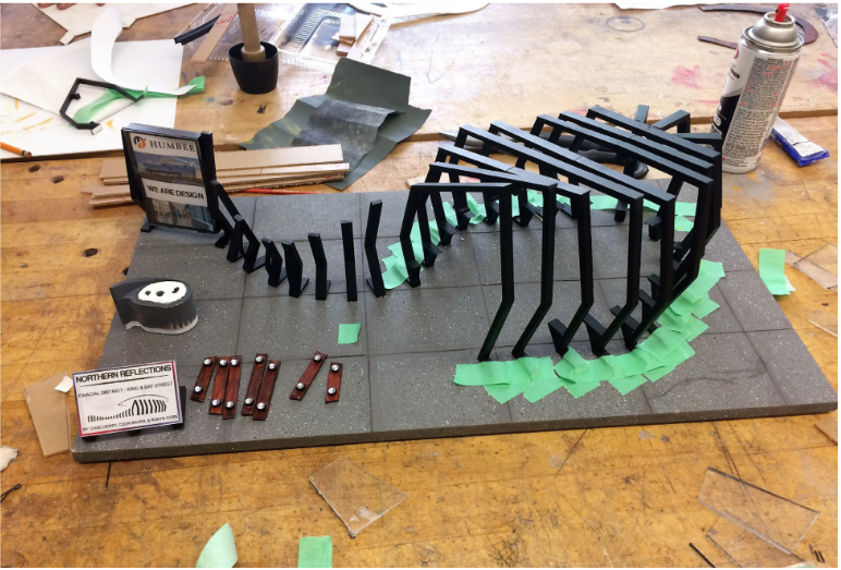 Northern Reflections is an unequally designed bus shelter that was inspired by Brookfield place, this project spanned over 7 weeks required our group to conduct a site visit and make a physical 1:5 scaled model.