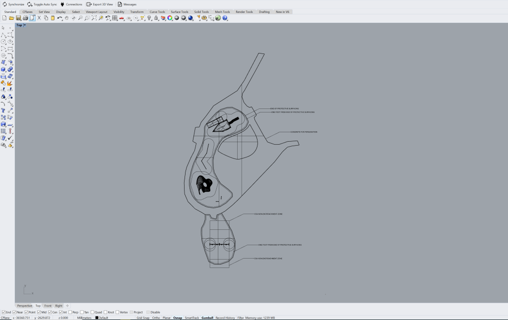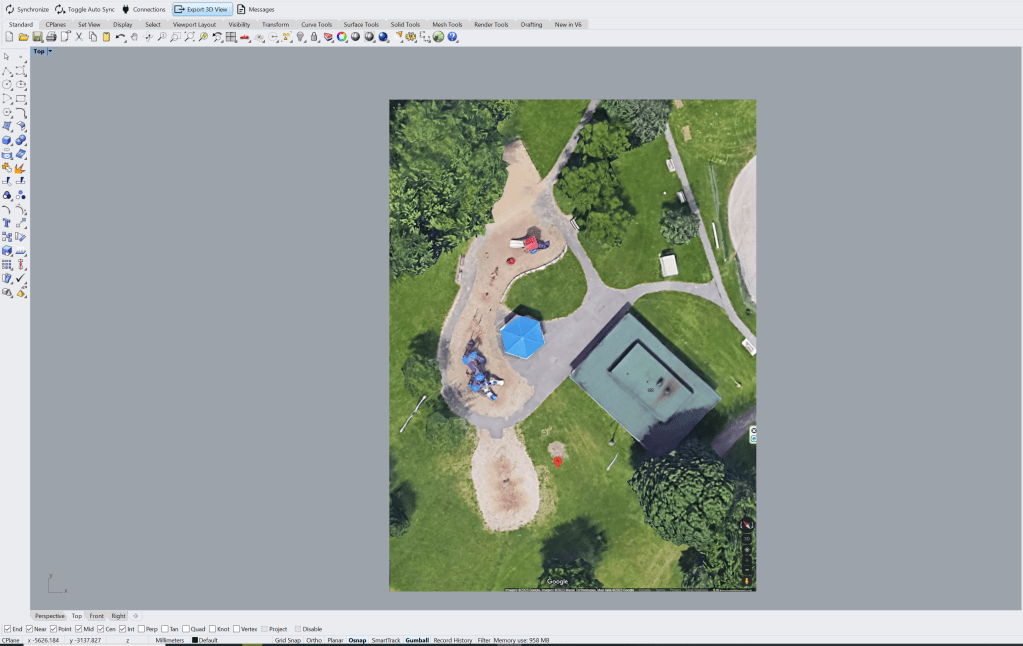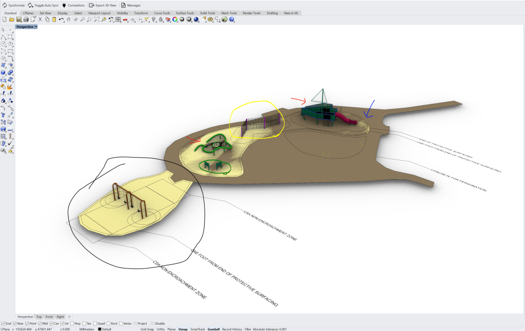 I quickly made a some play structures in Rhino due to it being in Canada the site will follow CSA rules for uses zones.